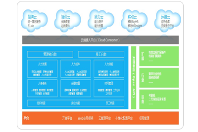 產(chǎn)品基于企業(yè)人力資源創(chuàng)新戰(zhàn)略,通過專業(yè)的人力資源核心平臺、社交化的全員自助服務平臺以及開放的云端應用創(chuàng)新,能承接企業(yè)選育用留四大業(yè)務流程: