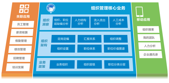 通過組織架構搭建,形成以職位體系為基礎的企業(yè)人力資源管理架構,同時為企業(yè)的員工管理、假勤管理、薪酬核算及管控、績效管理、培訓管理、招聘管理等人力資源業(yè)務的應用提供基礎數(shù)據(jù)。